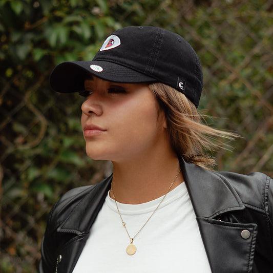 Gorra de visera curva con diseño bordado.